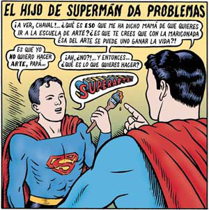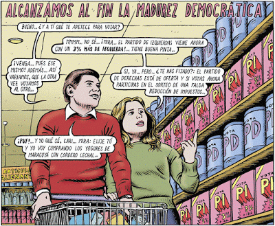 El trabajo de Miguel Brieva (n. 1974) es muy interesante. Difícil de clasificar, se le incluye en el apartado de humoristas gráficos, pero su obra tiene más dimensiones. Su estética visual está claramente inspirada en el grafismo ingenuo y optimista de los años cincuenta y sesenta del pasado siglo. Los textos que acompañan a las viñetas, sin embargo, son mordaces, demoledores, un poco mostrando el disparate a que nos ha llevado el consumismo ingenuo y optimista de aquellos años de felicidad prometida.