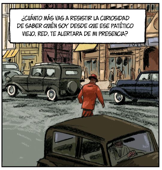 Y el hecho es que este formato de serie negra está presente también en Las serpientes ciegas. Solo que el duro blanco y negro de las historias anteriores de Cava en su colaboración con Arjona es sustituido ahora en su trabajo con Seguí por otra paleta… en la que predominan los rojos y los ocres.