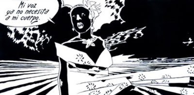 La técnica narrativa de Billie Holiday (la mirada retrospectiva, la investigación biográfica) recuerda a la empleada después por los mismos autores en Carlos Gardel. La voz del Río de la Plata. Sin embargo, lo que en este último cómic es luz y predominio del blanco, en Billie Holiday es negritud y sombra. (No sé si viene a cuento, pero sorprende el rastro de Muñoz y Sampayo en Sombras, de El Cubri.) Viene a ser la diferencia que hay entre el tango y el jazz-blues. En ambos casos, como en Alack Sinner, suena la música entre las viñetas.