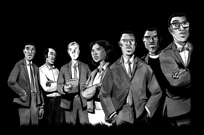 Escrito por Alfred Hassler y Benton Resnik, dibujado por Sy Barry y publicado a finales de 1957, Martin Luther King and the Montgomery Story [aquí en pdf] contaba en dieciséis páginas el boicot de 1955-56 liderado por MLK a los autobuses de Montgomery. Y exponía los principios de la resistencia pasiva y de la acción no violenta, practicadas como útiles para la desegregación racial. John Lewis conoció cuando era adolescente este comic book por vía de James Lawson, que fue quien lo introdujo en la teoría y la praxis de la resistencia no violenta. Lewis, mediante March, establece un hilo de continuidad entre este tebeo acerca del boicot de Mongomery y la narración ilustrada de su actividad militante por la misma causa de King. Obviamente, con las diferencias estéticas pertinentes entre ambas historietas, tras sesenta años que las separan, que son las que median entre la hagiografía cincuentera tipo Vidas ejemplares de la primera y el estilo graphic novel de la segunda.