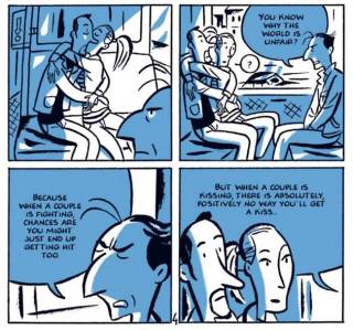 En realidad, El señor Jean se encuentra un poco en la línea de Malas ventas (Box Office Poison), la serie de Alex Robinson publicada entre 1996 y 2001 [aquí] y recogida ese año en un solo volumen de más de 600 páginas (los ocho álbumes de Monsieur Jean, sin extras, suman cerca de 500 páginas). Uno en versión francesa, otro en versión neoyorquina, ambos títulos exponen los avatares de una generación de jóvenes urbanitas florecida en los años noventa pasados.