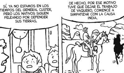 Con El americano, el tebeo de Calo que acaba de publicar Nuevo Nueve editores, me ha sucedido algo parecido a lo que me ocurrió al leer Epílogo, de Pablo Velarde, publicado por la misma editorial. Se trata en ambos casos de historietas que se leen sin descanso, de un tirón como quien dice, con agrado. Y al final, el placer se acrecienta cuando uno repara en lo que ha leído.