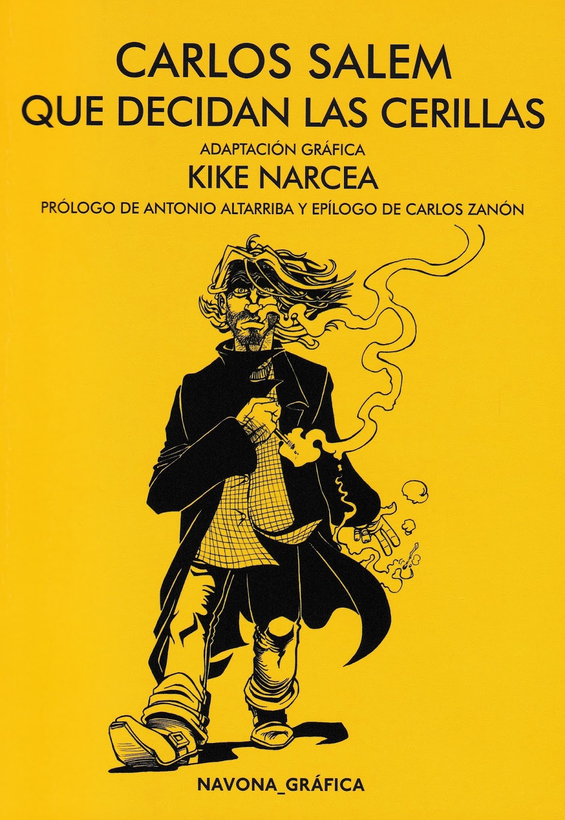 En cualquier caso, El huevo izquierdo del talento es un libro de naturaleza puramente negra y criminal. Está escrito por Carlos Salem (n. 1959), un autor de origen bonaerense que descolla en el cultivo de la série noire. La adaptación gráfica de este texto ha sido realizada por Kike Narcea, y el resultado es un muy brillante cómic publicado en enero de 2018 con el título Que decidan las cerillas. La faceta más conocida de Kike Narcea es la de cineasta, pero ya sus comienzos en el cine como realizador de storyboards son bien indicativos de su interés por el lenguaje del cómic y de su capacidad para realizar historieta. En este sentido, El tiempo de Plácido Meana (2012) es una película de Narcea en la que confluyen sus intereses por el cine y el cómic.