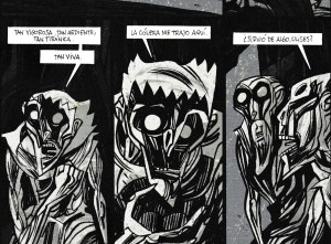 El mito es el espejo de la historia. Es un espejo líquido, como el estanque en el que se contempla Orfeo (en la representación de Max) y se encuentra reflejada la imagen invertida de una Eurídice encadenada. Este estanque opera como una de las fuentes de la cual manan los ríos que fluyen por la historia, de forma que las aguas de esos ríos, cada una de sus gotas, reflejan a su vez el mito. Santiago García y Javier Olivares han sabido establecer en La cólera esta compenetración especular entre el río y la fuente, a través de otra historia (que es también universal) y otro mito, esta vez de filiación bélica (aunque no solo eso) y, por ende, con mayor alcance social. La ira de Aquiles, su cólera, forma parte del agua que fluye por los siglos reflejando un complejo de imágenes alegóricas, aquellas que cantan, oh diosa, los versos homéricos. Pero no es el caso que en las representaciones míticas no sucedan acontecimientos; las aguas del estanque son tan procelosas como las de las corrientes que arrastran el devenir. La eternidad de los mitos no se opone a la temporalidad de la historia, sino que son dos versiones, dos maneras de encajar la realidad. En las dos ocurren eventos y acciones que, ya lo hemos dicho, se relacionan de manera especular. En el mito, es cierto, los hechos se suceden de un modo atemporal (la venganza de Aquiles sobre Héctor debido a la muerte de Patroclo no es un acontecimiento histórico), pero no por ello dejan de ser inspiración y alimento de poetas, narradores y todo tipo de artistas. Es este fenómeno el que revalida la condición de espejo que acompaña a los mitos.