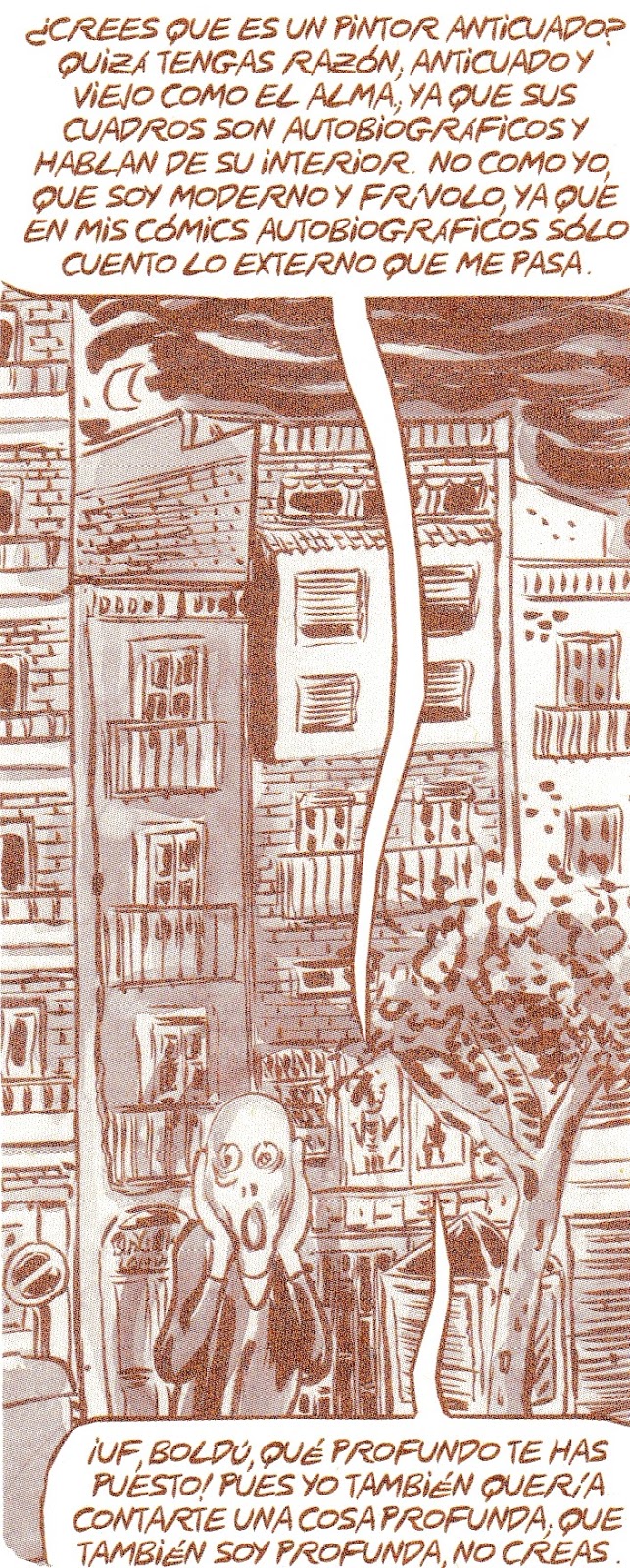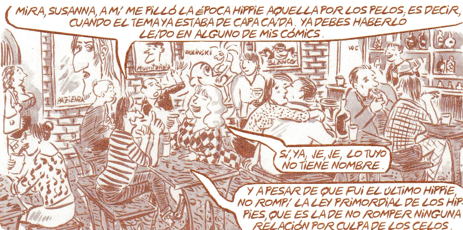 Lo cierto es que la interpretación congelada del mundo, la visión plagada de certezas y los estragos causados por la ausencia de cordura no son algo exclusivo de una u otra tendencia, sino que se extienden por todo el espectro ideológico. Por alguna razón, o por varias, Cava elige centrarse en una ideología para nada inocua, y aunque sin duda es potestad del guionista elegir su escritura, no se debe olvidar que hay más ideologías que no son inocuas. Quizás sea el deseo confesional lo que se encuentra detrás de las elecciones del escritor y condiciona sus guiones. En el caso que nos ocupa, el talento político habitual de Hernández Cava se combina en Del Trastévere al Paraíso con un calado de cariz costumbrista, en perfecta sintonía con la gráfica de Antonia Santolaya, que aporta mayor verosimilitud al relato.